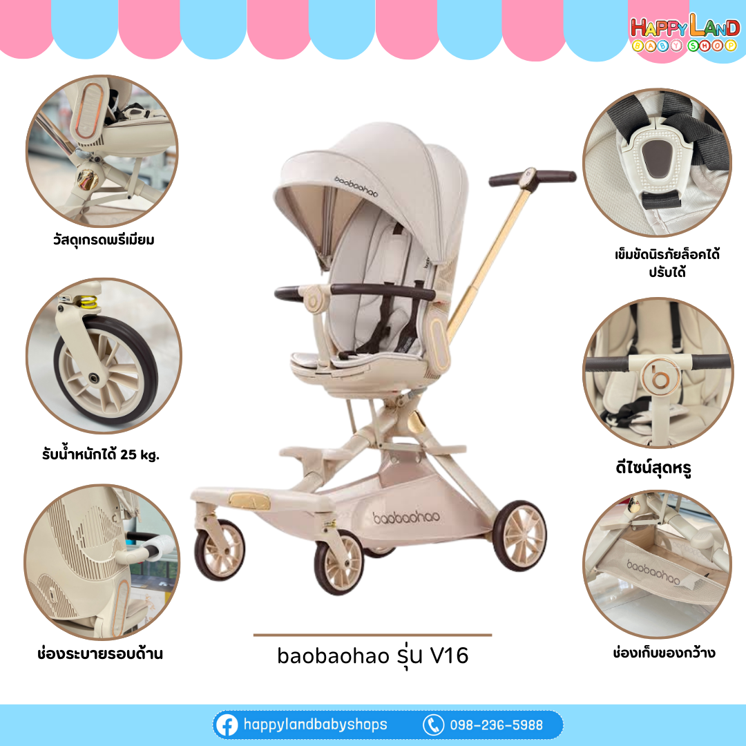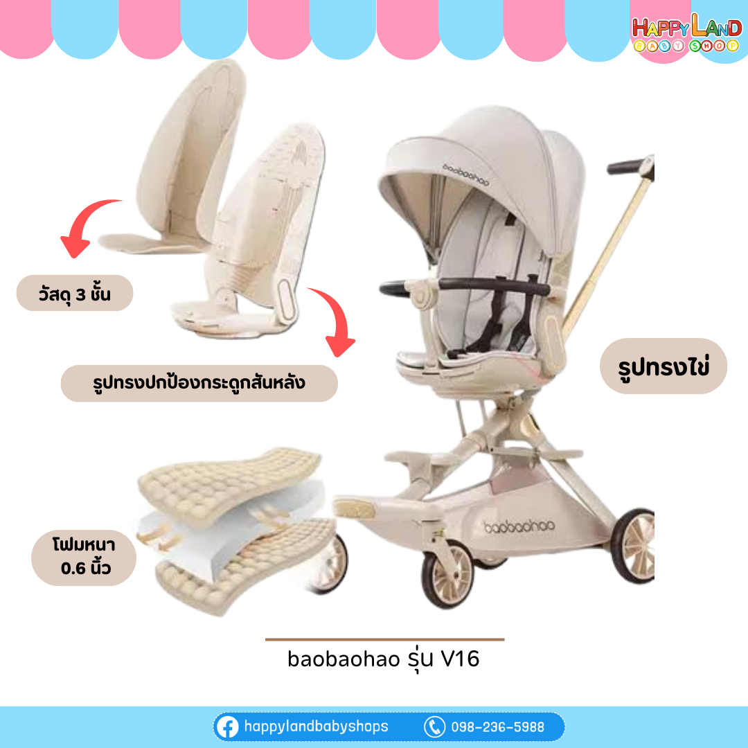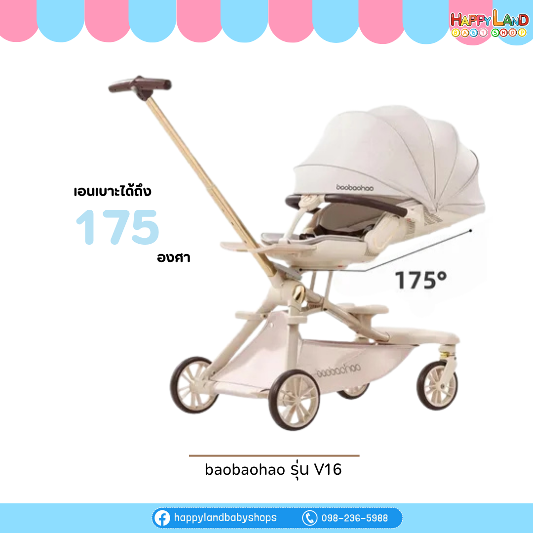 รถเข็นเด็ก Baobaohao รุ่น V16 ป็นรถเข็นที่อัปเกรดขึ้นมาจากรุ่นมาตรฐาน โดยเน้นความสบายของเด็กและการใช้งานที่ยืดหยุ่น