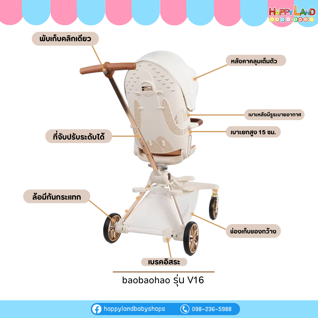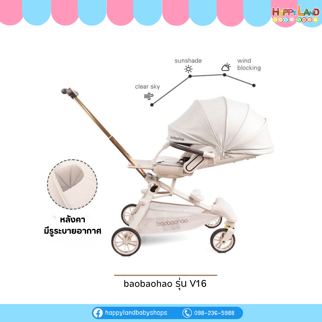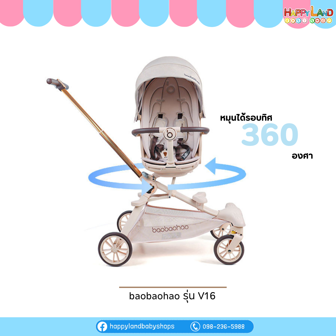 รถเข็นเด็ก Baobaohao รุ่น V16 ป็นรถเข็นที่อัปเกรดขึ้นมาจากรุ่นมาตรฐาน โดยเน้นความสบายของเด็กและการใช้งานที่ยืดหยุ่น