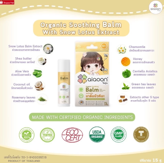 👼🏻 ไออุ่น บาล์มบัวหิมะ ออร์แกนิค aiaoon Organic Soothing Balm with Snow Lotus Extract