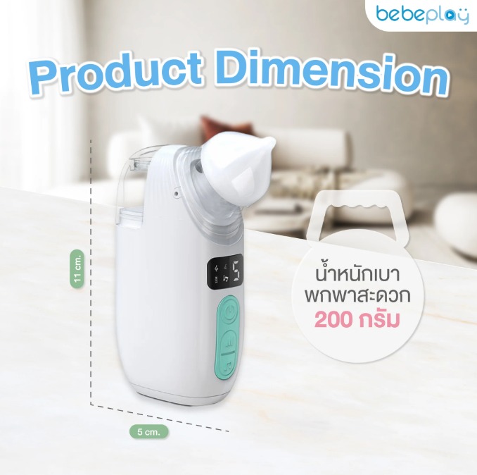 📎ใช้งานได้ตั้งแต่แรกเกิดจนโต ผ่านการทดสอบการใช้งาน ซึ่งไม่เป็นอันตรายต่อลูกน้อย 📎ปรับระดับความแรงได้ 5 ระดับ ปลายหัวดูดซิลิโคน Food Grade นิ่ม ไม่ทำลายโพรงจมูกเด็ก 📎ป้องกันน้ำมูกไหลย้อนกลับ ลดการสะสมเชื้อโรค 📎มีไฟที่ตัวเครื่องดูดน้ำมูก มีเสียงเพลง 2 เสียง ช่วยผ่อนคลาย เสียงเงียบเพียง 45-50 DB น้ำหนัก 200 กรัม ขนาดตัวเครื่อง 11 x 5 cm. แบตความจุ 1500 mAh