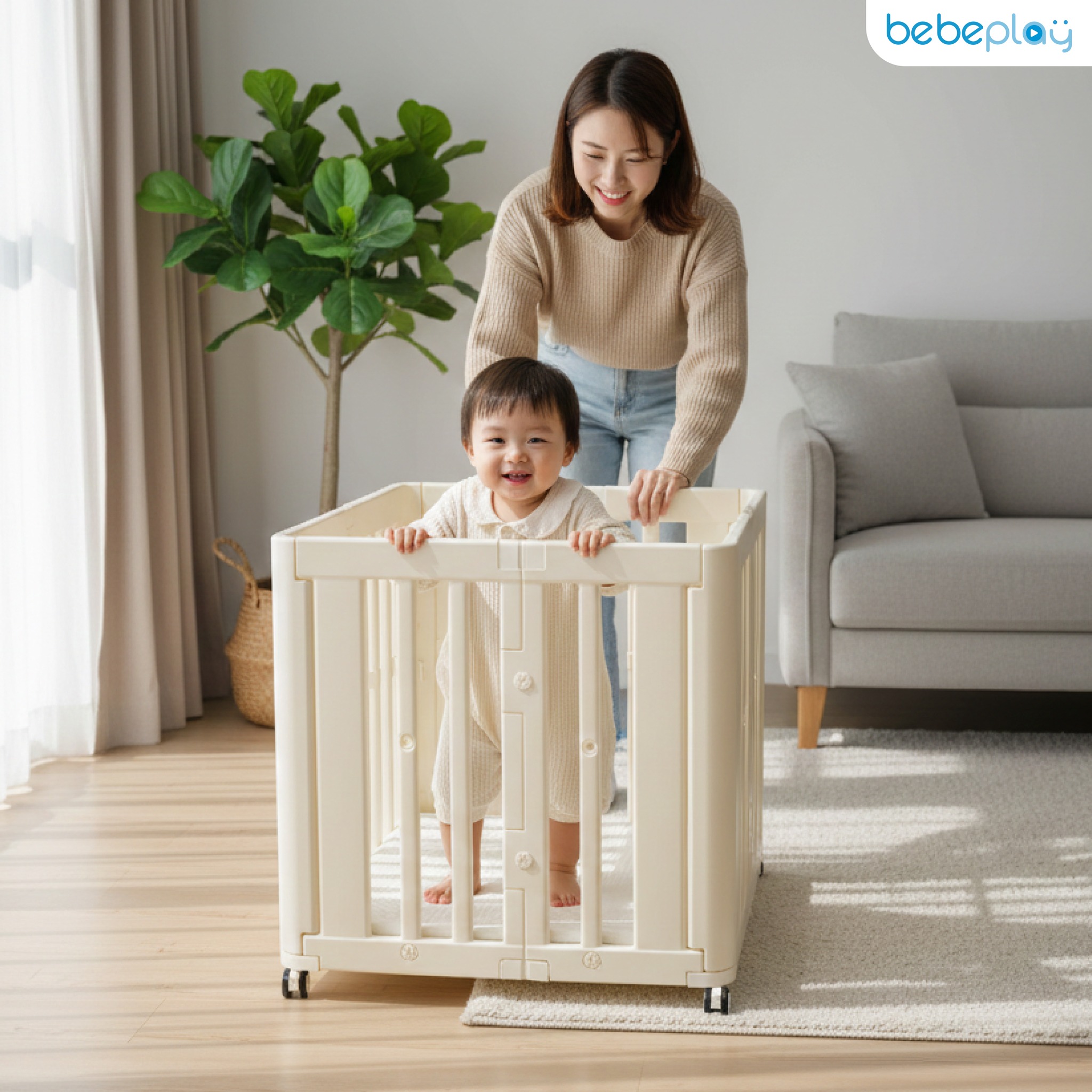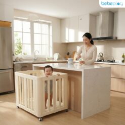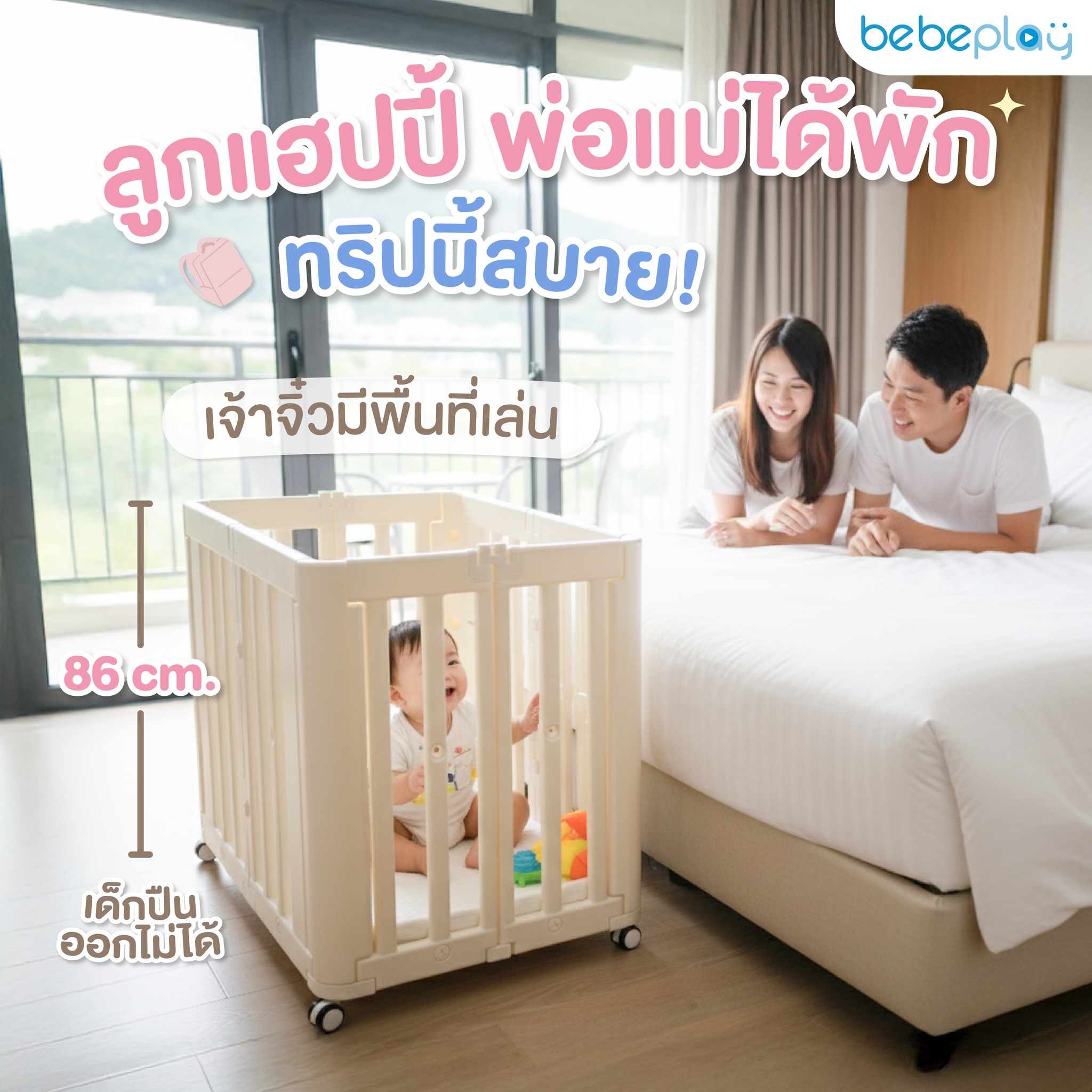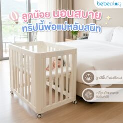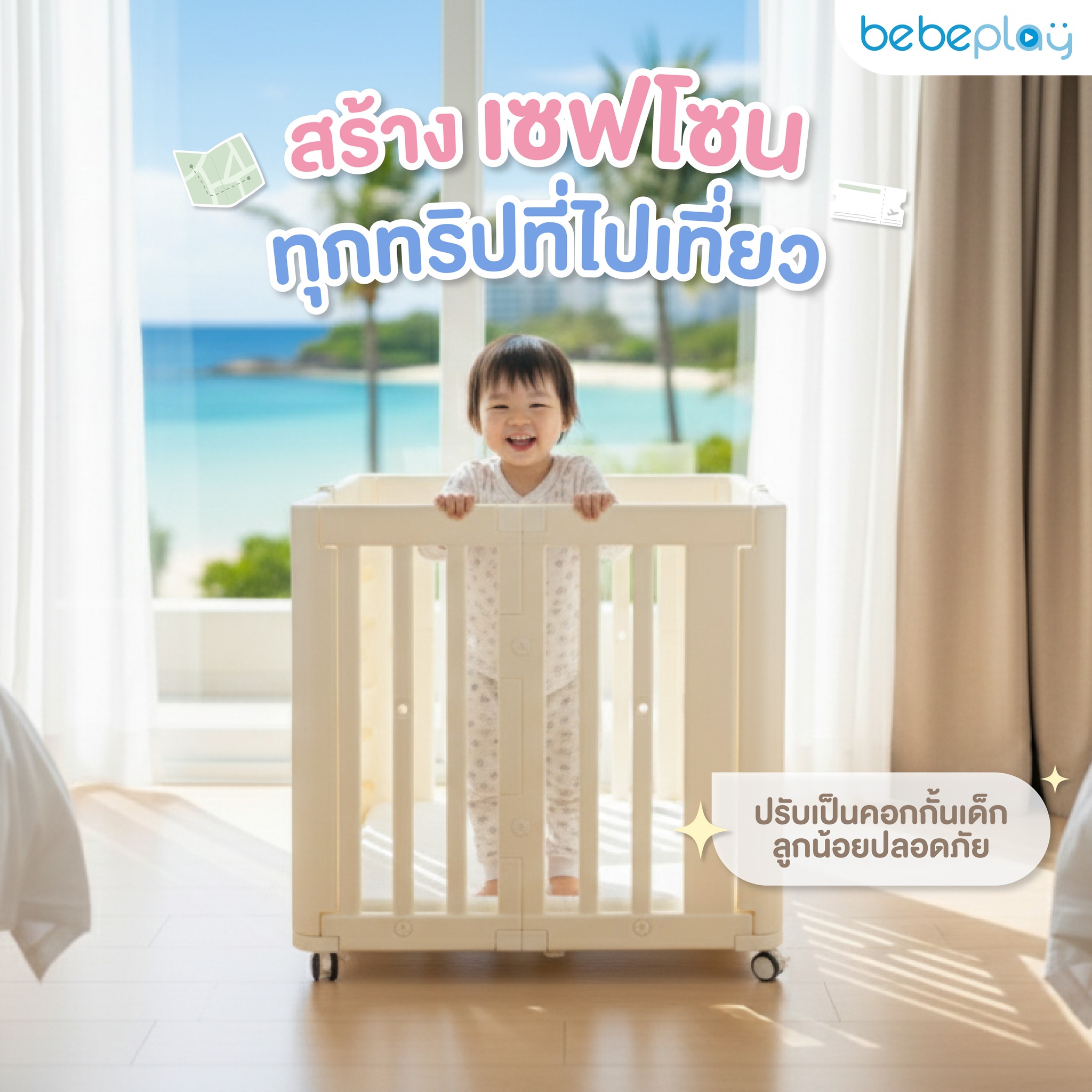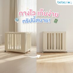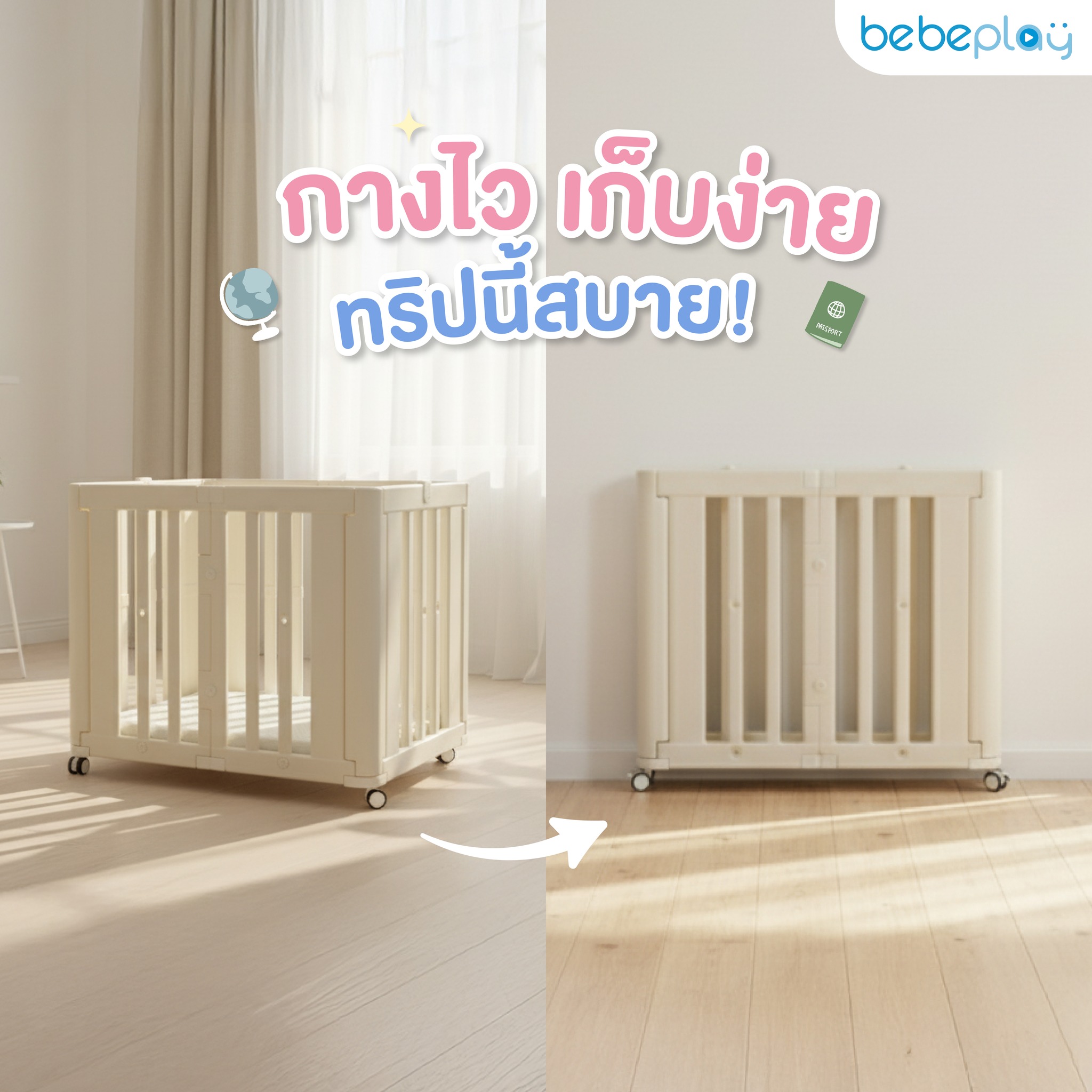 bebeplay เตียงนอนเด็กพับเก็บได้ 2in1 คอกกั้นเด็ก