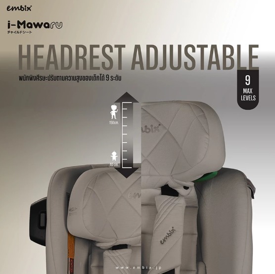 – พนักพิงศีรษะปรับตามความสูงของเด็กได้ 9 ระดับ