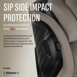 – มีระบบป้องกันแรงกระแทกด้านข้าง SIP (Side Impact Protection) ทำจากวัสดุ “ยาง” ทำให้มีความยืดหยุ่นสูง สามารถถอดออกแล้วเลือกติดตั้งทางด้านซ้ายและขวาได้ เพื่อติดในฝั่งที่นั่งของเด็กที่อยู่ชิดกับประตูของรถ เพื่อลดระยะความกว้าง ระหว่างประตูและตัวเบาะคาร์ซีท ส่งผลให้การเคลื่อนตัวของเบาะนั้นน้อยลงขณะเกิดการชน เพื่อลดแรงกระแทกที่จะส่งถึงตัวเด็ก