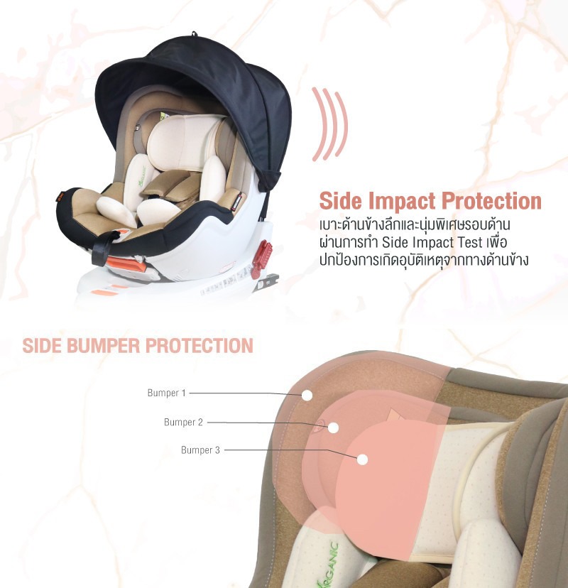 Side Impact Protection: เบาะด้านข้างลึกและนุ่มพิเศษรอบด้าน ผ่านการทำ Side Impact Test เพื่อปกป้องการเกิดอุบัติเหตุจากทางด้านข้าง