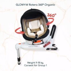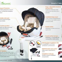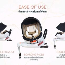 360° Rotation: ปรับหมุน 360 องศา ได้ในคลิกเดียว ง่ายต่อการอุ้มลูกขึ้น-ลงจากรถจากด้านข้าง หรือเปลี่ยนจากการนั่งแบบหันหน้าเข้าหาเบาะเป็นหันหน้าออกจากเบาะ โดยไม่ต้องติดตั้งคาร์ซีทใหม่