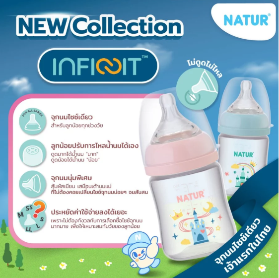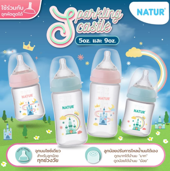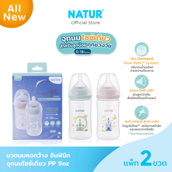 [NEW] NATUR เนเจอร์ INFINIT ขวดนม ขวดนมคอกว้าง อินฟินิท PP 9oz ลายปราสาท (แพ็ก 2)