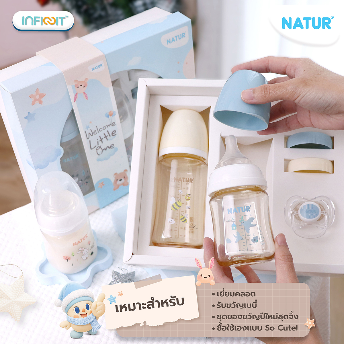 INFINIT ขวดนมอินฟินิท ขวดนมเด็ก ขวดนมสี PPSU พิมพ์ลาย 5 oz 1 ขวด และ 9 oz 1 ขวด