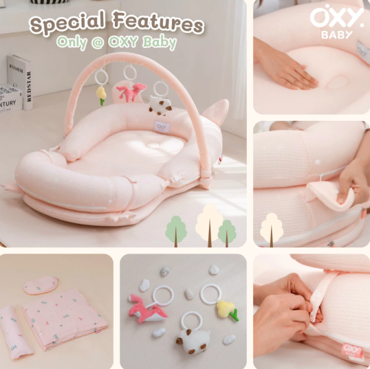 OXY Baby Joyful Nest Slope Plus+ ที่นอนรังนกหายใจผ่านได้ มาตรฐานยุโรป พร้อมโมบาย มุ้ง และหมอนกันกรดไหลย้อน