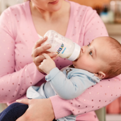 ขวดนมป้องกันอาการโคลิคของเรามีระบบวาล์วป้องกันอาการโคลิค ออกแบบผิวสัมผัสให้ลดการติดขัดและความไม่สบายตัวระหว่างให้นม ด้วยวาล์วป้องกันอาการโคลิคในตัว อากาศจะระบายออกจากท้องของลูกน้อยแล้วเข้าไปในขวดนมแทน