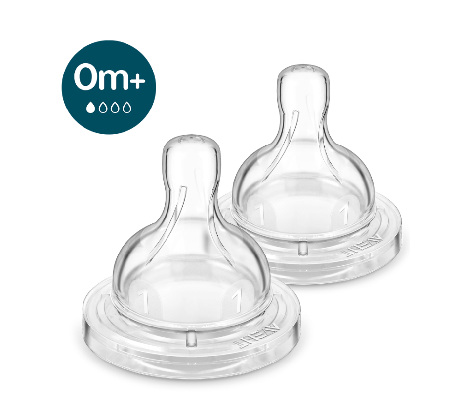 จุกนมป้องกันอาการโคลิคที่มีการไหลระดับ 1 มีวาล์วในตัวที่ไล่ลมออกจากท้องของลูกน้อยได้ แนะนำสำหรับลูกน้อยแรกเกิดอายุ 0 เดือนขึ้นไป