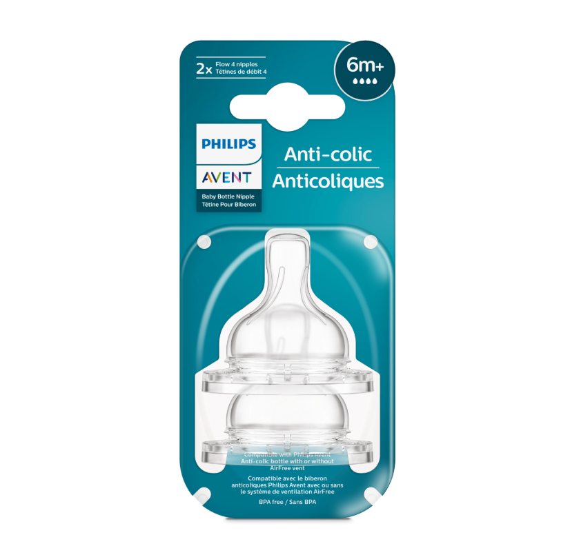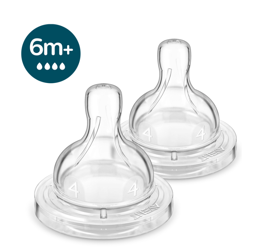 จุกนมป้องกันอาการโคลิคที่มีการไหลระดับ 4 มีวาล์วในตัวที่ไล่ลมออกจากท้องของลูกน้อยได้ แนะนำสำหรับลูกน้อยอายุ 6 เดือนขึ้นไป