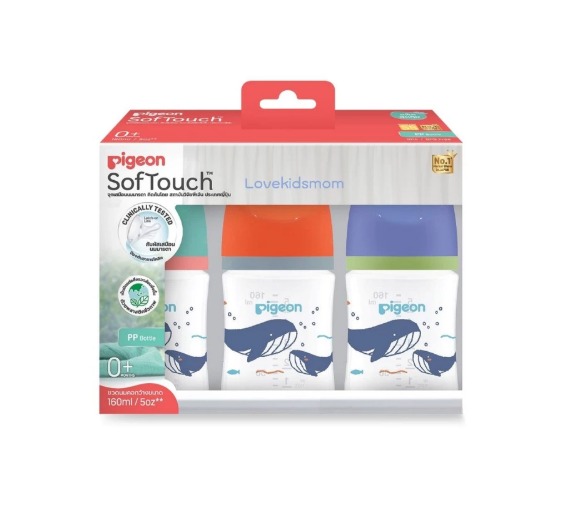 Pigeon พีเจ้น ขวดนมคอกว้างสีใส PP ลาย ปลาวาฬ5ออนซ์ แพ็ค 3ขวด