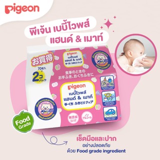 Pigeon พีเจ้น เบบี้ไวพส์ สูตรแฮนด์แอนด์เม้าท์ 70ชิ้น แพค 2